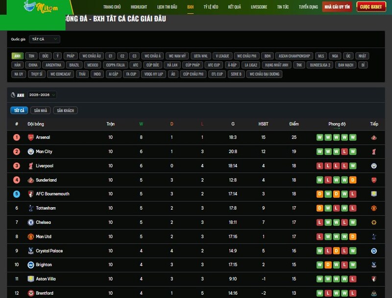 Thay vì chỉ là nơi hiển thị điểm số thuần túy, nền tảng này mang đến trải nghiệm xem bảng xếp hạng sống động, có chiều sâu, và quan trọng hơn, đủ nhanh để giúp người hâm mộ không bỏ lỡ bất kỳ sự thay đổi nào sau mỗi lượt trận.