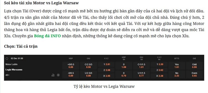 - Tài/xỉu: Đưa ra nhận định dựa trên lối đá, hiệu suất ghi bàn và cách nhập trận của hai đội.