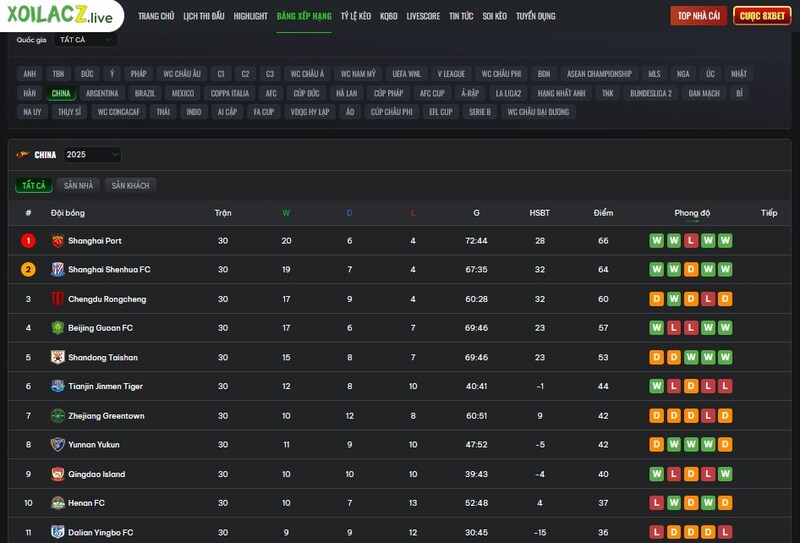Trên Xoi Lac TV, bảng xếp hạng bóng đá trung quốc không chỉ hiện điểm, mà còn: