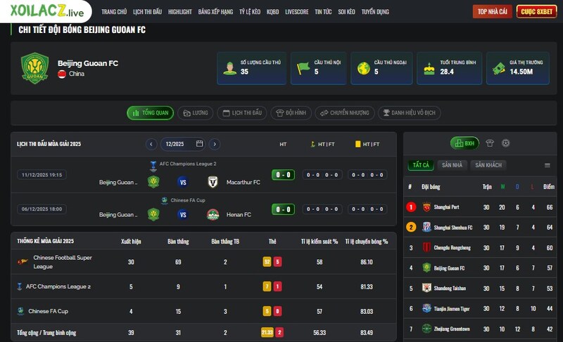 Điểm mà mình thấy Xoi Lac TV vượt trội hẳn là khả năng liên kết thông minh giữa bảng xếp hạng và các phần khác: